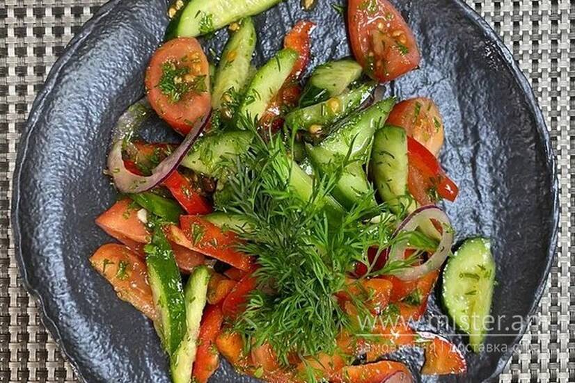 Огірок, помідор, перець болгарський, цибуля, домашня олія.