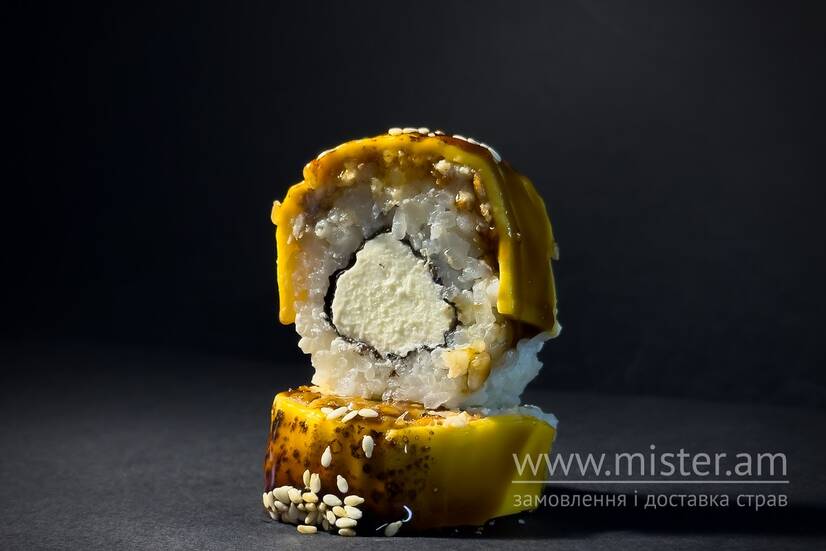 Рис, крем-сир, вугор, чеддер, норі, унагі, кунжут.