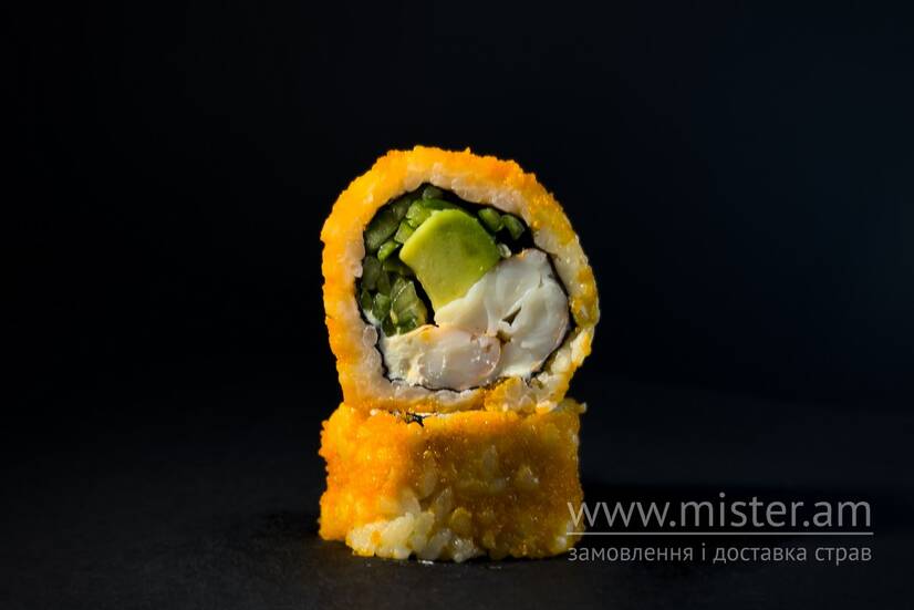 Рис, креветка, авокадо, огірок, норі, ікра масаго.