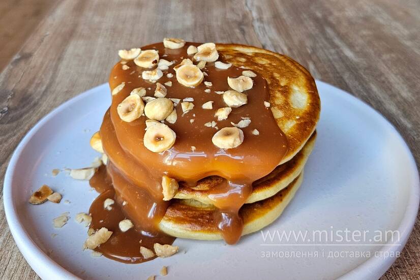 Пишні оладки, як домашні, з карамеллю та фундуком.
