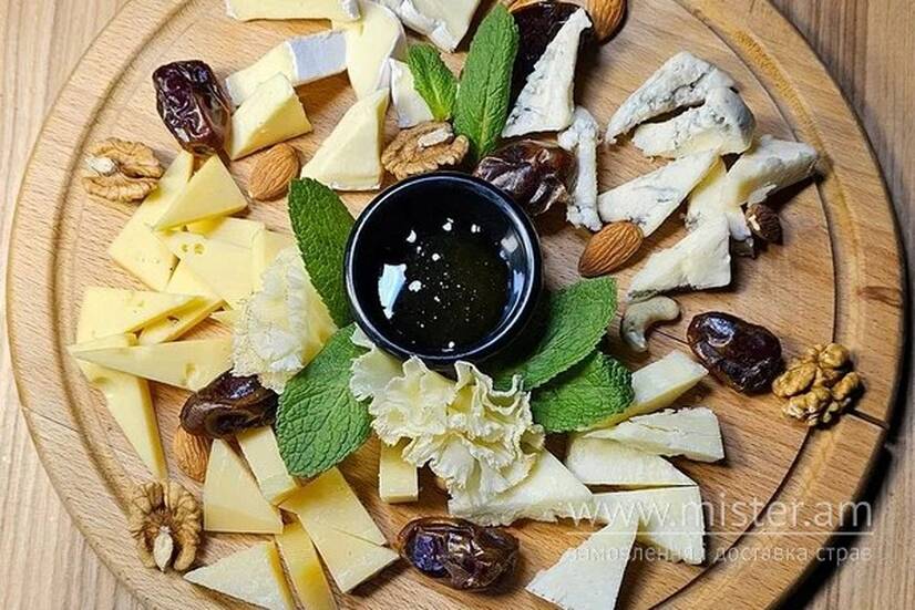 Справжня насолода для гурманів - пармезан, пекоріно, тет де муан, радомєр, горгонзола, брі, мед, фініки, асорті з горіхів.