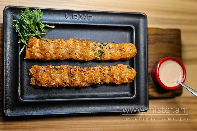 Кебаб, що готується з подрібненого м`яса курки, намаринованого та обсмаженого на мангалі. Подається з пікантним соусом.