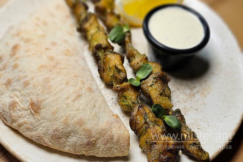 Шашличок з рапанів з пітою і часниковим соусом