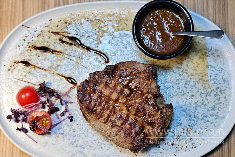 Стейк зі свинини - оригінальний погляд на традиційну страву. М`ясо маринується в соусі Ворчестер та гірчиці. Подається з соусом до стейку.