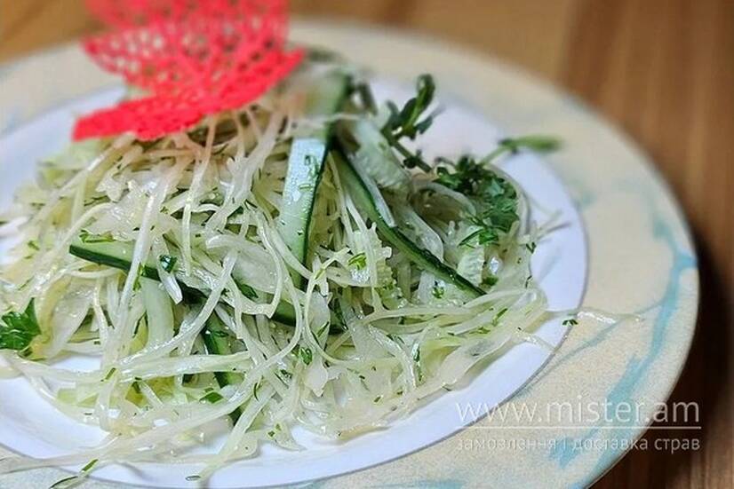 Молода, хрумка капуста, свіжий огірок - ідеальне доповнення до основної страви.