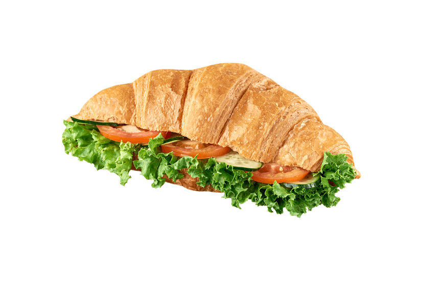 Круасан, сир філадельфія, салат Лолло Біонда, огірок свіжий, помідор свіжий.