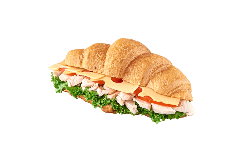 Круасан, соус Цезар, куряче філе, сир королівський, салат Лолло Біондо, помідор свіжий