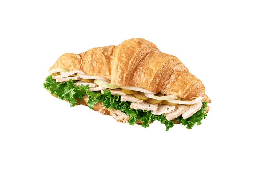 Круасан, соус Цезар, балик, цибуля маринована, салат Лолло Біондо, огірок квашений.