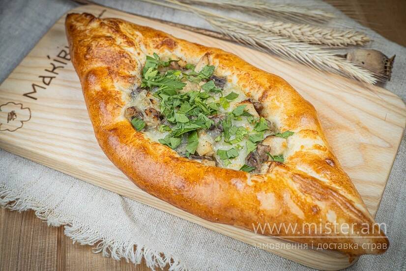 Тісто дріжджове, творог, моцарела, курка, печериці, вершки, сіль, перець, петрушка.