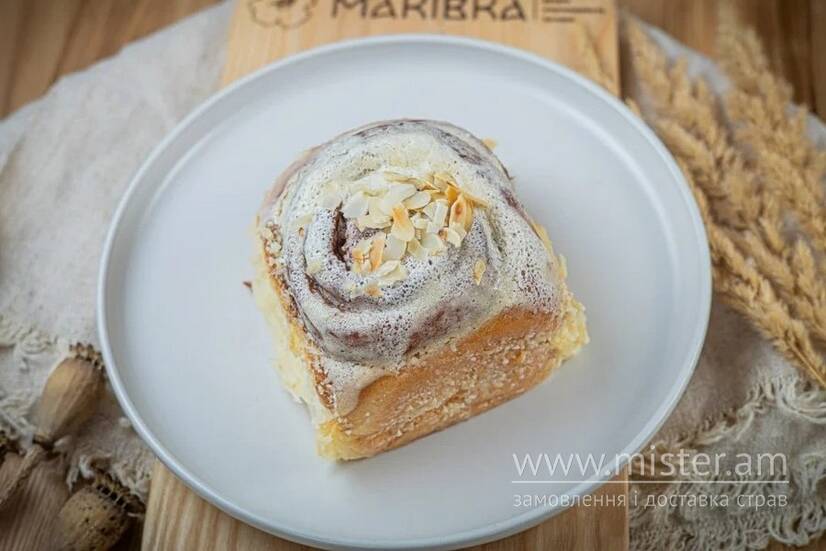Вершкове масло, крем сир, борошно, цукор, дріжджі, кориця, яйця, Мигдальне пластівці.