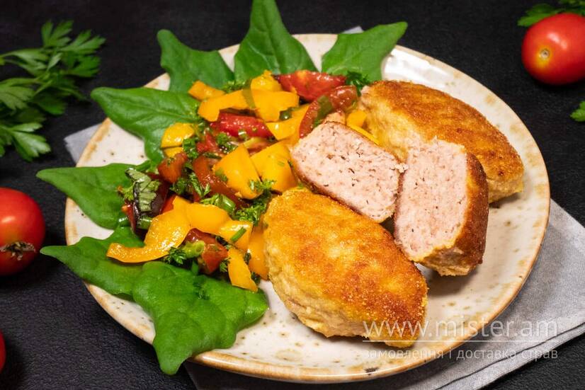М`ясо індика (74%), цибуля ріпчаста, батон пшеничний, крупа кукурудзяна, яйця курячі, сіль кухонна, перець чорний мелений.
