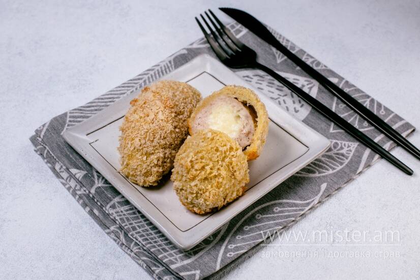 Філе куряче (44%), яйця курячі (18%), масло вершкове (16%), батон пшеничний (13%), борошно пшеничне вищого ґатунку, сіль кухонна, лимоний сік, зелень свіжа, часник сухий, перець чорний мелений.