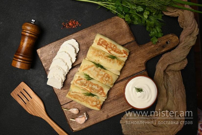 Молоко коров`яче (35%), сир бринза (32%), борошно пшеничне вищого ґатунку (14%), яйця курячі, зелень свіжа, вода питна, масло вершкове, часник сухий, цукор білий кристалічний, сіль кухонна, перець чорний мелений.
