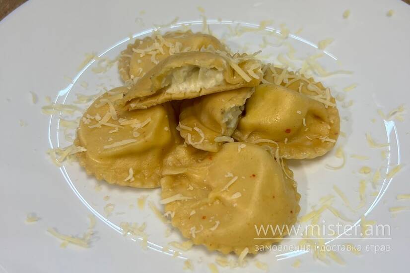 Тісто (борошно пшеничне вищого ґатунку (31,75%), вода питна (15%), яйця курячі (2,5%), олія соняшникова рафінована (0,4%), сіль кухонна (0,4%), клітковина цитрусова (0,3%), перець кочукару (0,15%)), начинка (сир кисломолочний 5% (20%), сир моцарела тверда (10%), крем-сир вершковий (10%), сир пармезан (6%), сир з блакитною пліснявою (4%), сіль кухонна (0,5%), часник сухий мелений (0,2%)).