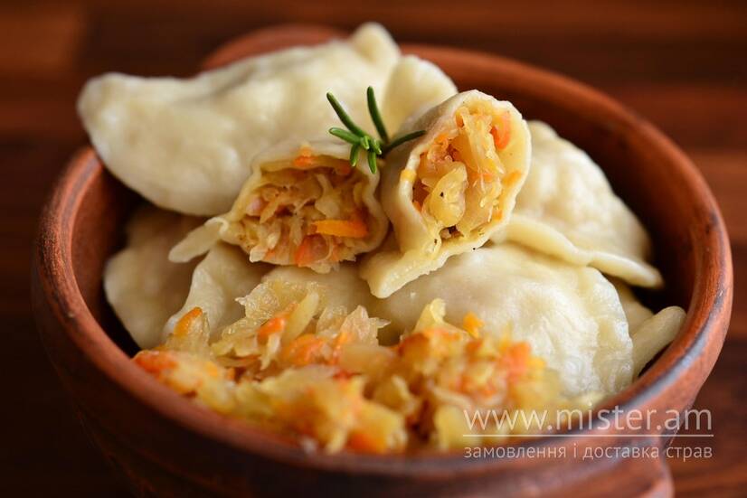 Борошно пшеничне вищого ґатунку (23%), капуста квашена (22%), цибуля ріпчаста смажена (18%), гриби печериці смажені (16%), вода питна, цукор білий кристалічний, олія соняшникова рафінована, морква смажена, гриби білі сухі (0,3%), сіль кухонна, перець чорний мелений.