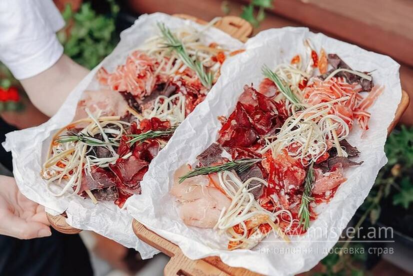 Бастурма, вогняна сальса, слойка, сп'яна та романа,яловичина джеркі,шийка королівська, сулугуні копчений.