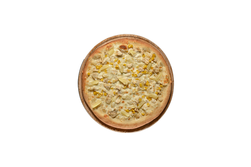 Вершковий соус, сир моцарела, курка, кукурудза, ананас.