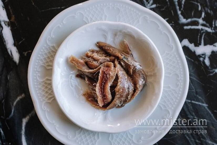 Antipasti-бар: Артишоки-гриль, Сир Пекоріно Романо, Сир Пармезан 24 місяці, Оливки Vittoria Verdi Dolci зелені з кісточкою, В`ялені томати, Прошуто Крудо, Салямі Мілано, Мортадела з фісташкою, Мед до сиру , Соус тунцовий Вітелло Тоннато, Хлібна корзинка від Пана Пекаря, Чіабата