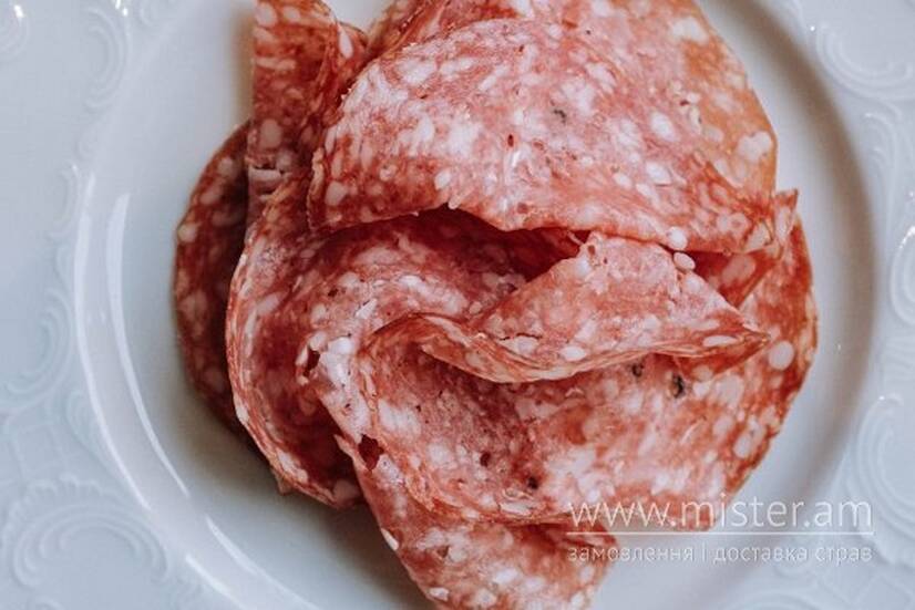 Antipasti-бар: Артишоки-гриль, Сир Пекоріно Романо, Сир Пармезан 24 місяці, Оливки Vittoria Verdi Dolci зелені з кісточкою, В`ялені томати, Анчоус, Прошуто Крудо, Мортадела з фісташкою, Мед до сиру , Соус тунцовий Вітелло Тоннато, Хлібна корзинка від Пана Пекаря, Чіабата