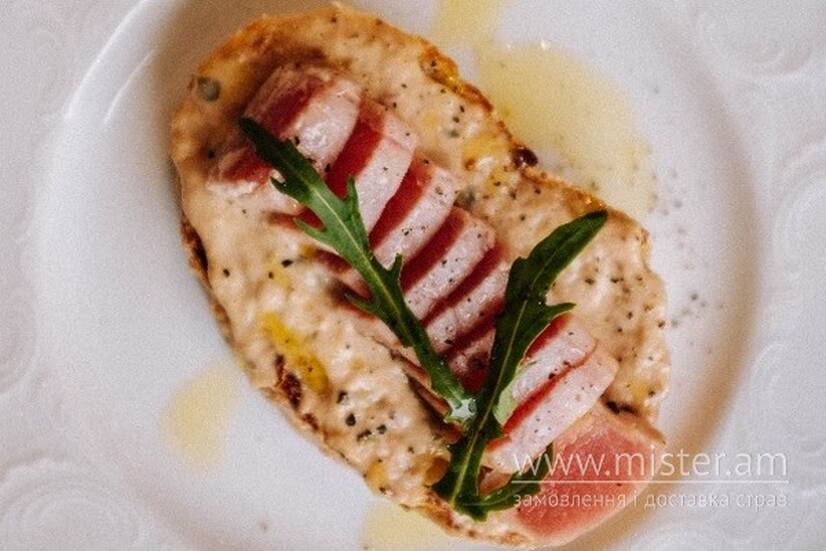 Стейк тунця з тунцовим соусом Вітелло Тоннато на чіабаті від Пана Пекаря.