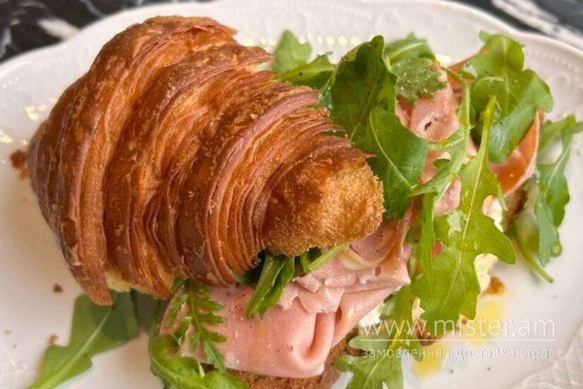 Повітряний круасан, наповнений дуетом сирів — страчателою та моцарелою, що тануть у роті. Делікатна мортадела та соус песто надають страві виразності, а рукола додає свіжості та структури. Ідеальний варіант для тих, хто любить гастрономічні сніданки з італійським шармом.