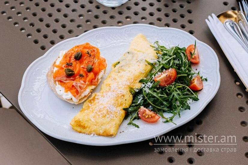 Омлет з Пармезаном та брускетою з сьомгою