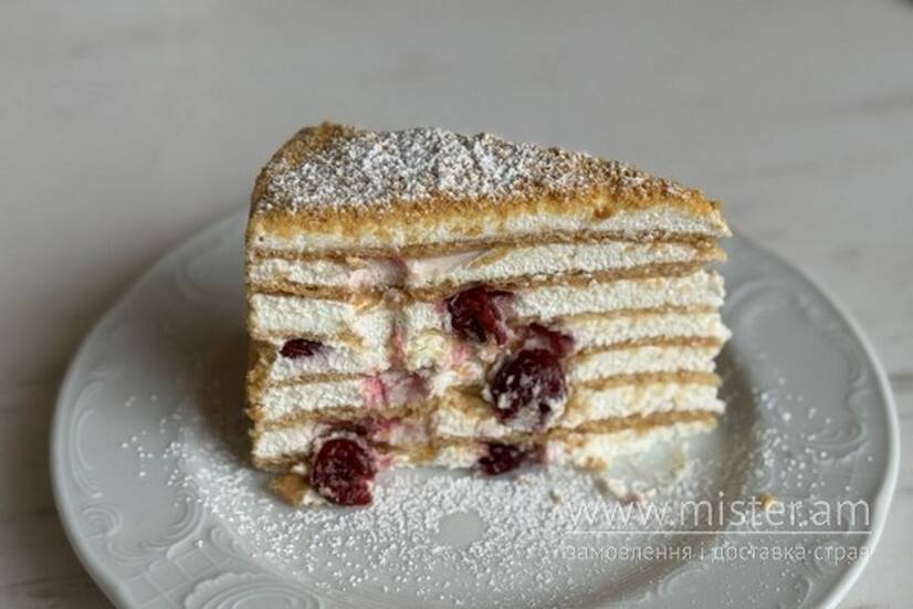 Аморе, цей десерт - про ідеальний баланс солодкості та кислинки! Авторський медовик від Су-Шефа Олександри Щепак: зі сметанно-вершковим кремом та кюлі з вишнею.