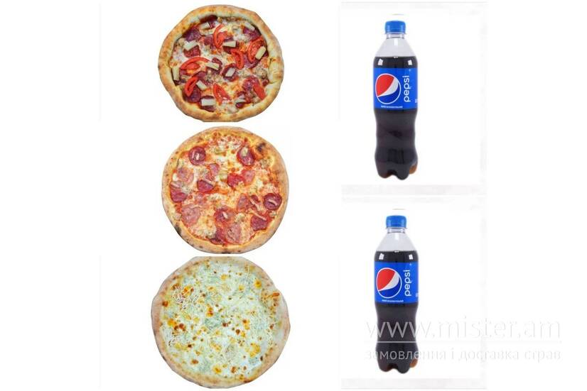 Нагетси 6 шт., картопля фрі, сир фрі 6 шт., Пепсі 0.5 л 2 шт.