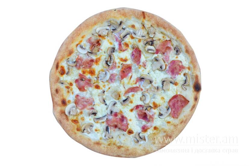 Шинка з печерицями на вершковому соусі з моцарелою + соус до бортиків.