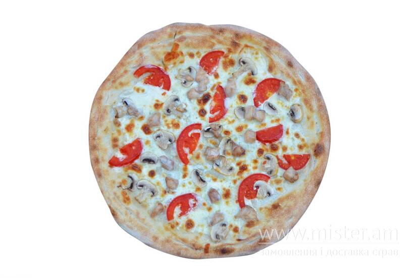 З курячим філе, печерицями та томатами на вершковому соусі з моцарелою та трюфельною олією + соус до бортиків.