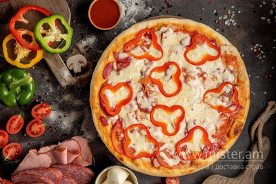 Фірмовий томатний соус, балик, салямі, томати, гриби, перець солодкий, сир Моцарелла