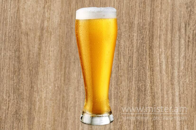 Світле фільтроване пиво, 5.8 вміст алкоголю. Виготовлено з ячмінного солоду, пивоварного ячменю, хмелю та меду.