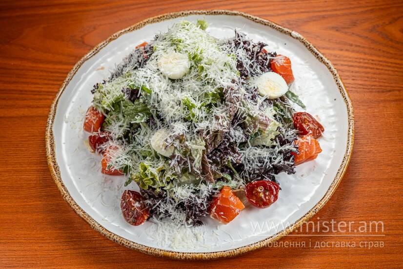 Салат "Цезар" з ніжним лососем власного посолу