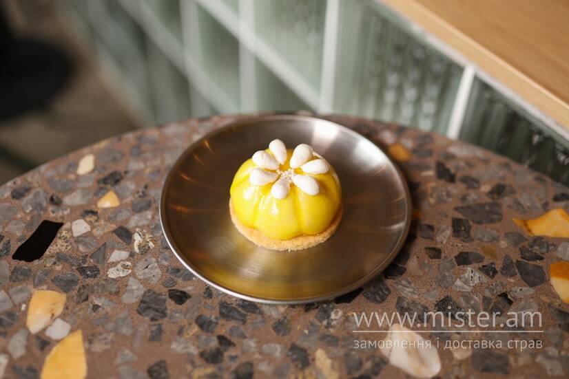Ніжний, танучий вершковий мус із манго з серцем із маракуї, покритий тонкою жельованою глазур’ю. Хрустка пісочна основа додає балансу текстур. Десерт, який хочеться їсти повільно.