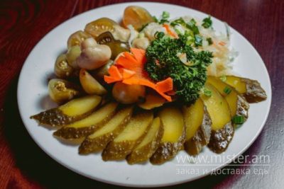 Огірки солоні, квашені помідори, капуста квашена, гриби мариновані