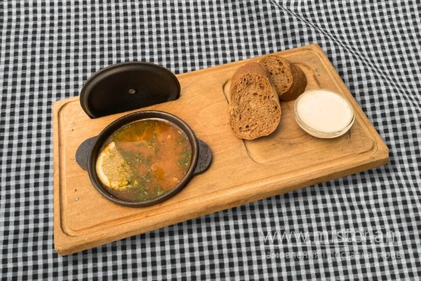 М'ясний суп на основі томатів і трьох видів м'яса.