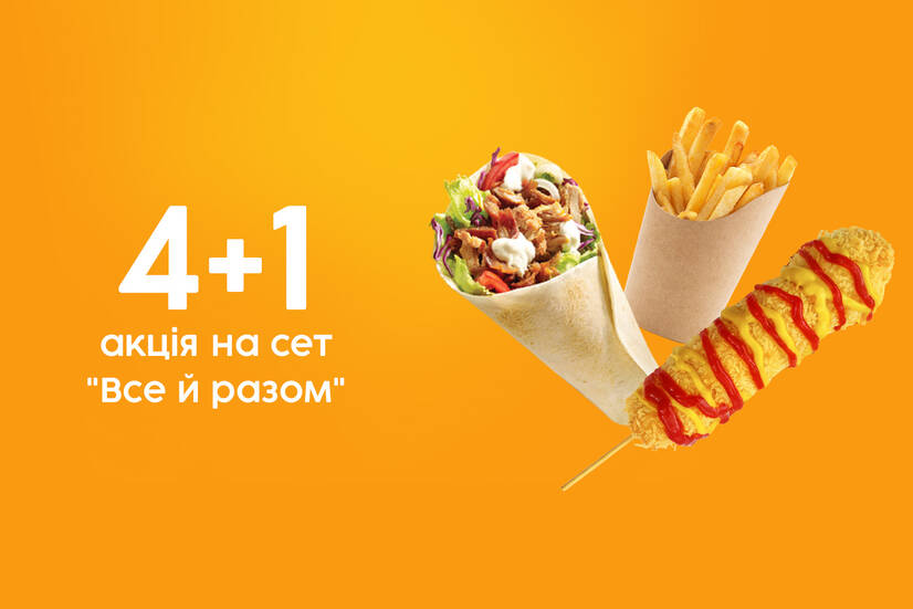 Замов 4 відкриті шавухи у ланч-боксі і отримай картопю фрі або корн-дог у подарунок. Бажаний подарунок вкажіть у побажанні до замовлення.
