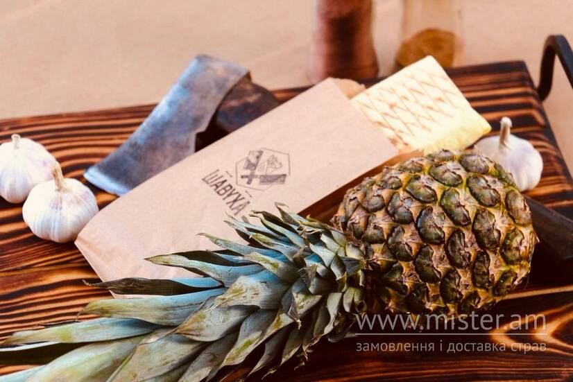 Шавуха "Те що треба" з додаванням шматочків ананасу. Відчуй гармонію смаку курячого м`яса, фірмового соусу та солоденьких шматочків ананасів - неперевершено. Правда?!