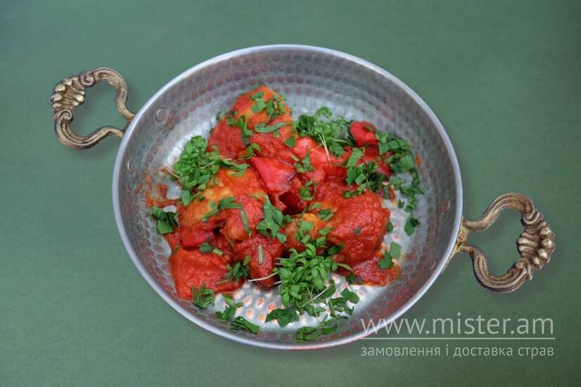 Куряче стегно в томатах та запеченим перцем