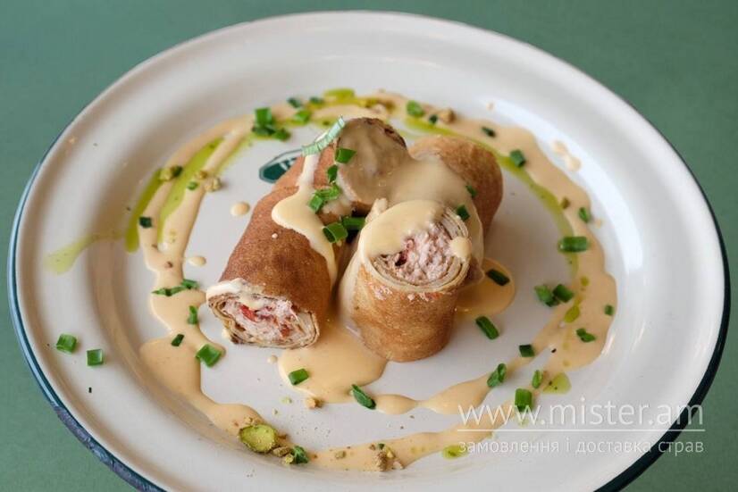 Млинці з соковитою куркою та в`яленими томатами - насичений смак у кожному шматочку.