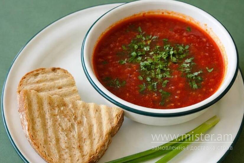 Наваристий овочевий борщ зі свіжою зеленню та хлібом. Той самий смак — просто трішки легший.