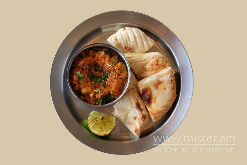 Ніжна ікра з тушкованих кабачків, моркви та цибулі з томатною пастою й спеціями. Подається з теплою фокачею, кунжутом і свіжою зеленою цибулею.