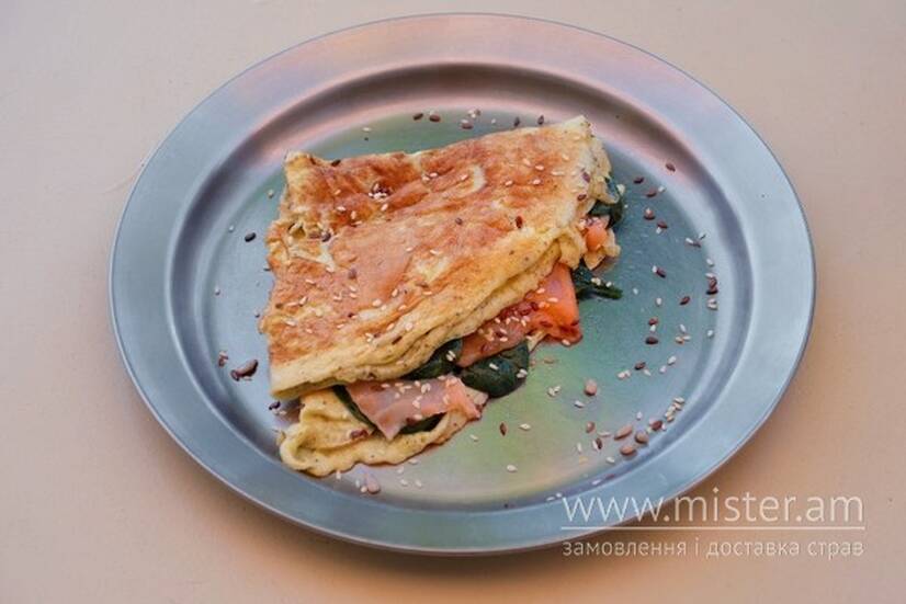 Ніжний омлет із соковитим слабосоленим лососем - ідеальне поєднання ніжності й смаку.