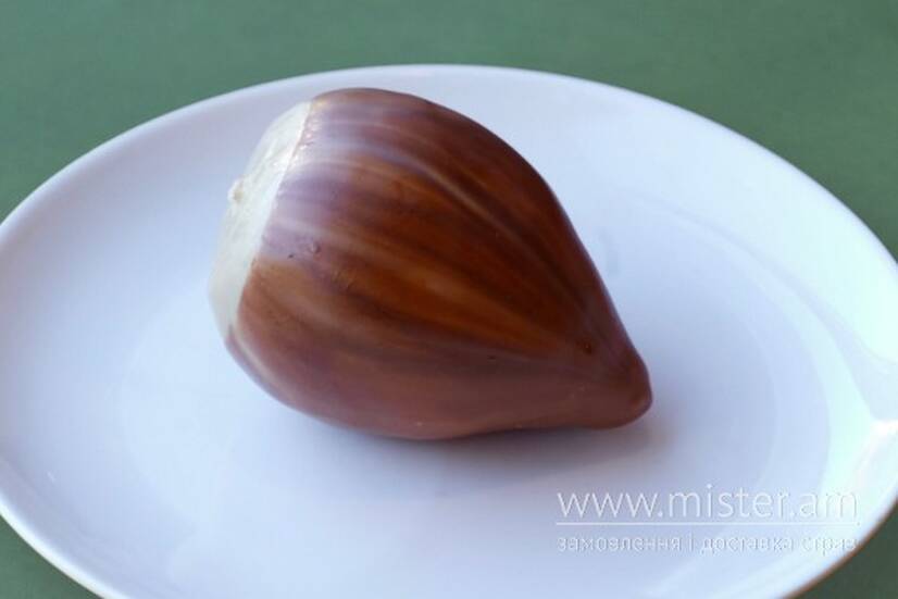Ніжний горіховий мус з бельгійського шоколаду, всередині праліне з фундука, заварний шоколадний крем та хрусткий шар з карамелізованого лісового горіху. Весь десерт вкритий шаром тонкого флокажу, що доповнює смак та додає хрусту.