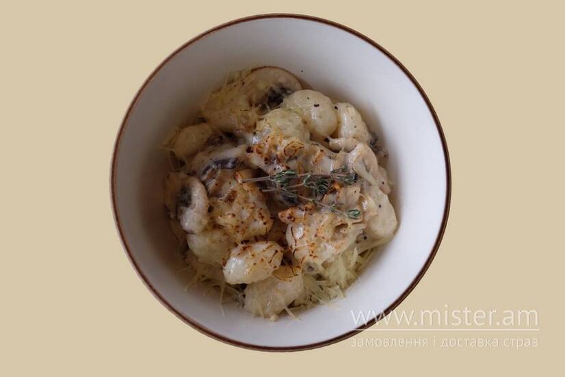 Ніжні картопляні ньокі подаються з соковитою телятиною, тушкованою до м’якості в насиченому соусі деміглас. Глибокий смак соусу і ніжність м’яса ідеально поєднуються з делікатною текстурою ньоків, створюючи вишукану та комфортну страву.