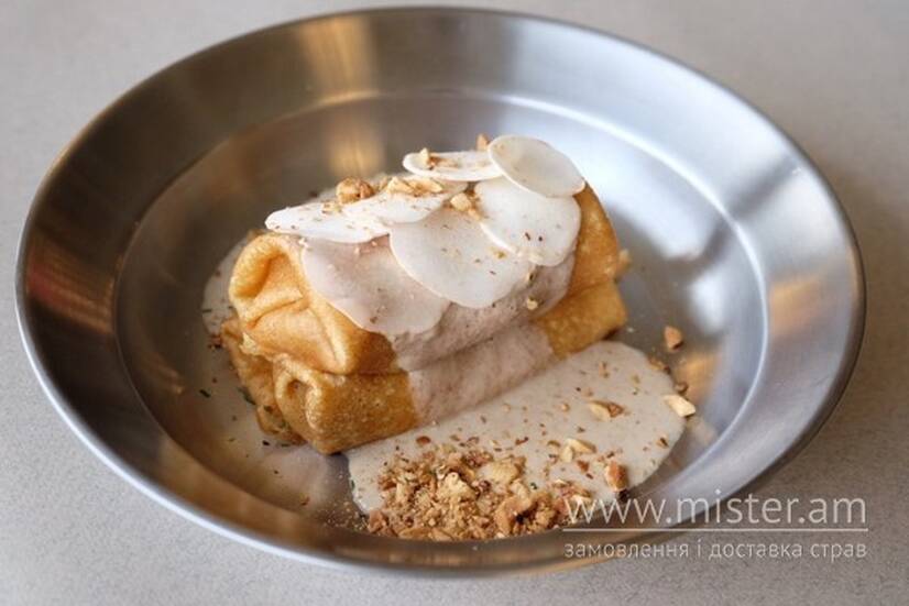 Печериці в ніжному грибному соусі, тягуча моцарела й хрусткий фундук. Рол, який хочеться сфоткати й з’їсти.