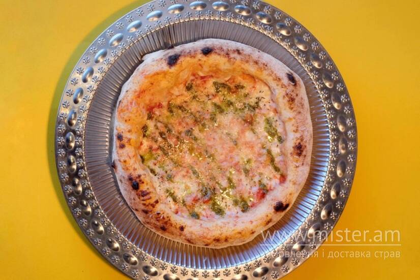 Класичний червоний соус, ніжна моцарелла, ароматний песто та витриманий пармезан. Доповнюємо сушеним базиліком та орегано — і вуаля, Італія у кожному шматочку.