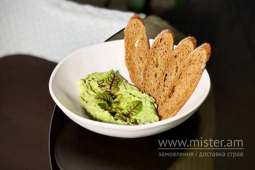 Гуакамоле з хрустким гречаним багетом та міксом насіння.