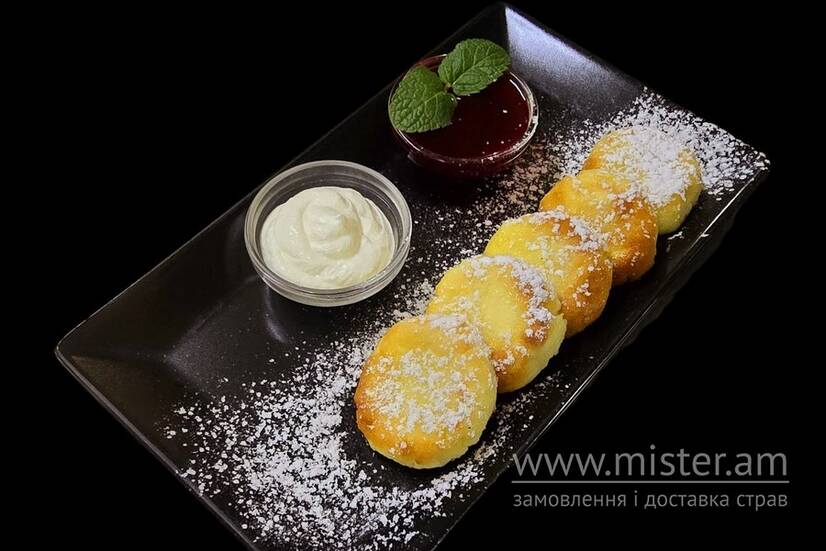 Сирники з ягідним джемом та сметаною
