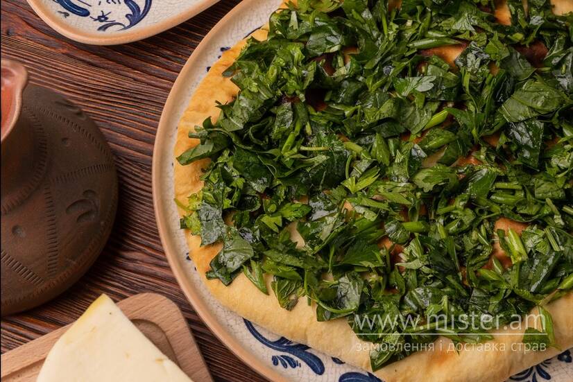 Молоде ягня, шпинат, петрушка, кінза, м`ята, зелена цибуля.